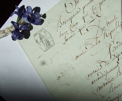 エンボススタンプとインクスタンプ、冊子中央に透かし模様あり